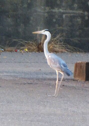 魚の在庫が無くなって 釣り・・・(^_^.) アオサギ君のいる港へ 釣り人は1名 軽のワゴンを風よけにしてサビキ釣り 子鯵をぽいっと投げた先にアオサギ君が居ました居ました 釣りの師匠のような顔をして でも食べようとしません 傍にはもう一匹の鯵が転がって…