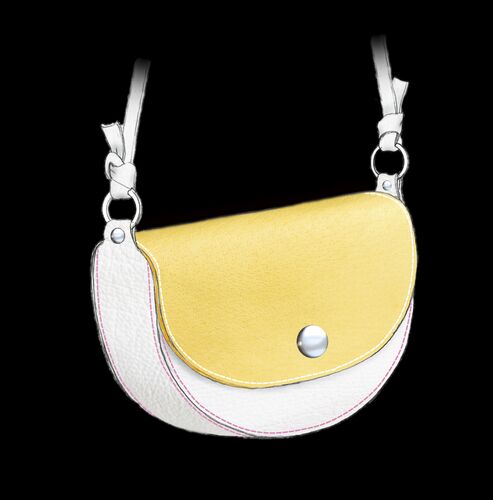 孫娘がマイバッグを欲しがるのでイッチョ作りますか 袋入りのビスケットとティッシュが入れば良い 娘はスイカのようなまあるいのが 可愛くて良いかなと言うことで デザインを起こしてみました 孫に聞くと黄色!と言う 可愛くピンクの糸でどうだ? グリーンが…