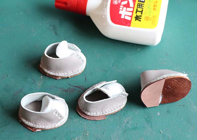 縫ったら靴底を貼り付け