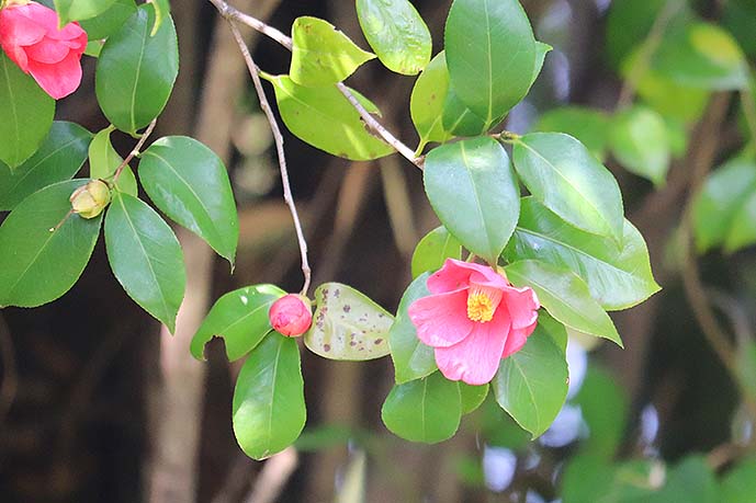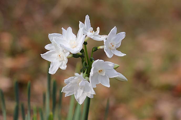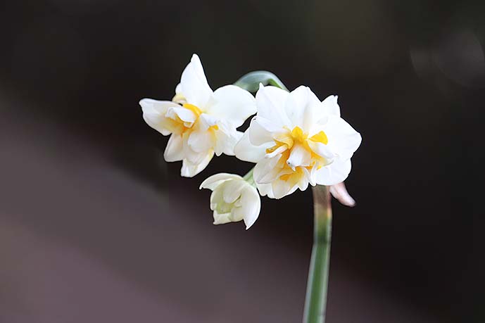 2023-01-24 春が来た・・・1雪も来た さんぽの途中 小さな風景 花達が咲き出しました 八重咲きの水仙 水仙にもいろいろありますね もう椿も咲いていました。 大分にしては珍しく 朝から雪が舞っています。