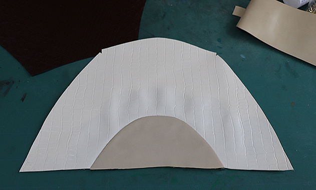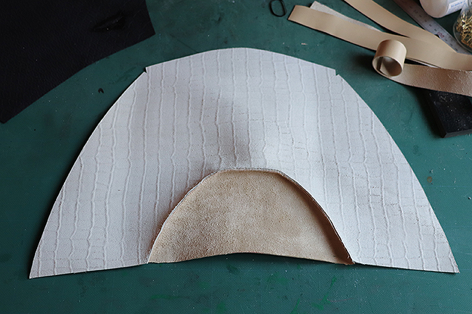 次はチョコレート色の革との接続です。