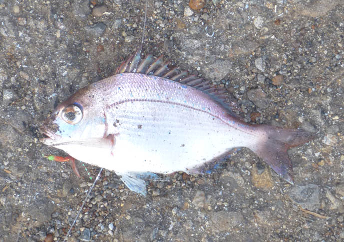鯵が続く中12cmの真鯛の子供が掛かってリリース