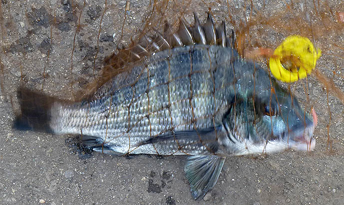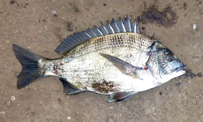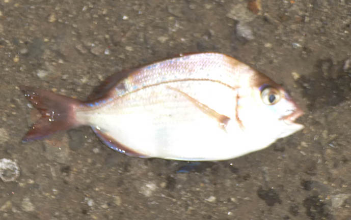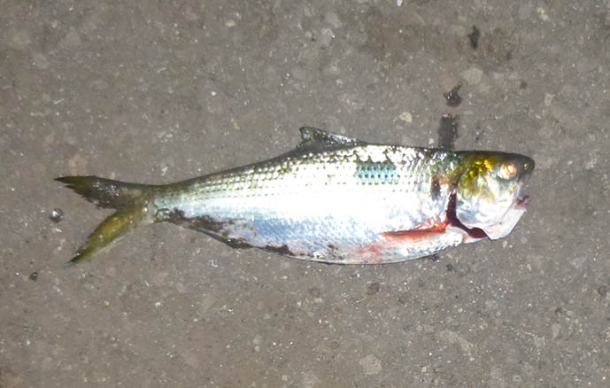 ゴカイで釣りをしていた婿殿が22cmの鯵を釣る