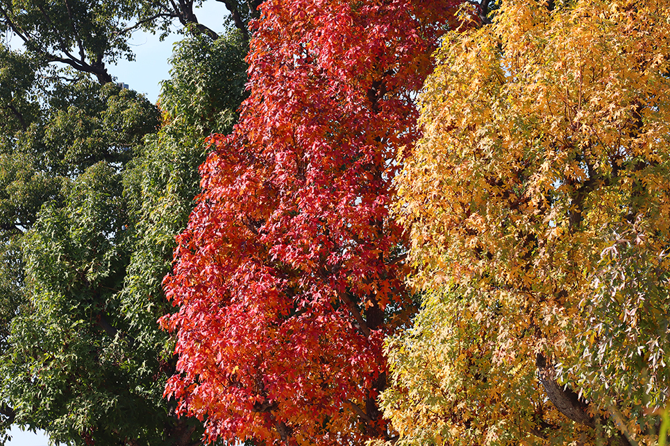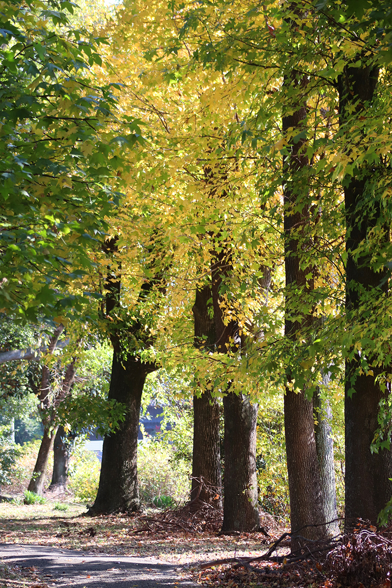 2023-12-06 並木 さんぽの途中 小さな風景 ウォーキングコースの紅葉をご覧下さい こんな道を歩いてるんですよぉ 良いでしょ 右は住宅街 左は川の土手です 良いとこばかり切り取りましたが 私にとって身近な風景です。