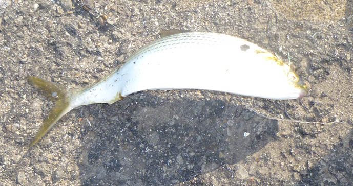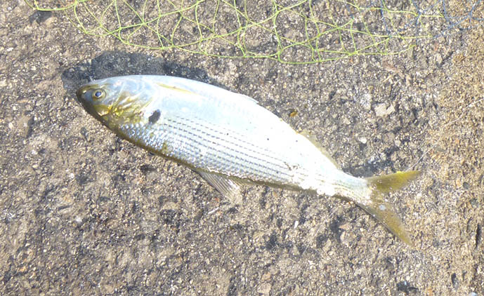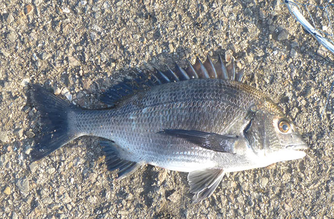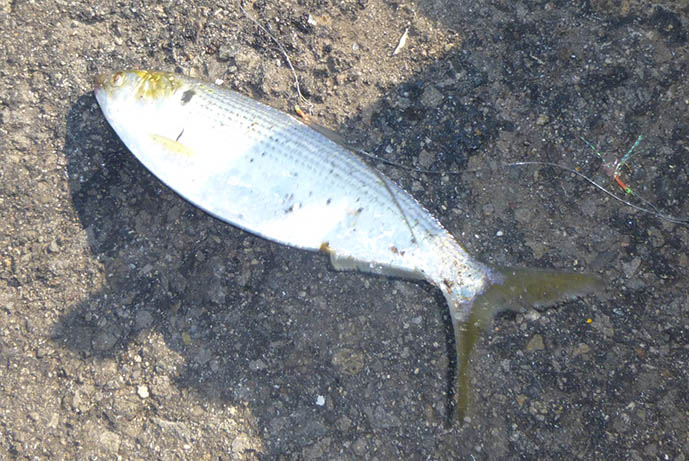 結局釣れずに 泳がせで使ったマメアジはアオサギのお嬢さんに差し上げて納竿