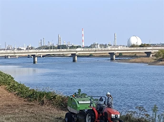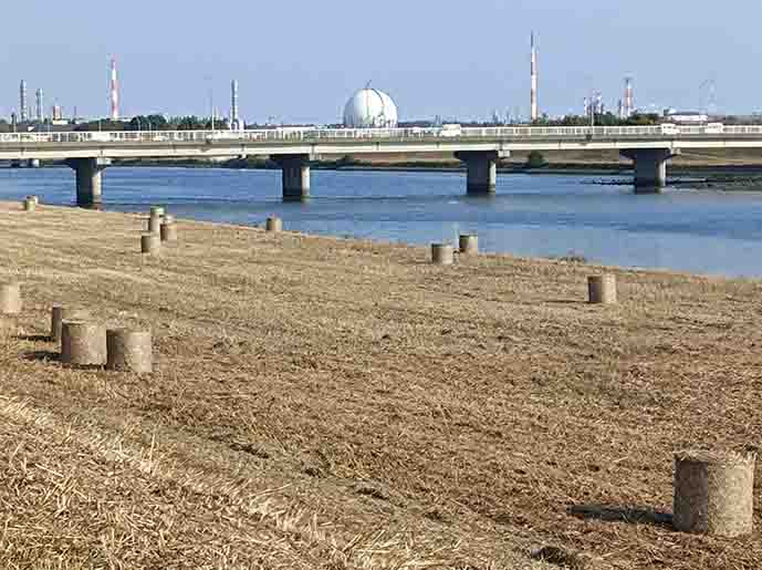 河川敷には丸められた草の束がゴロン!ゴロン!