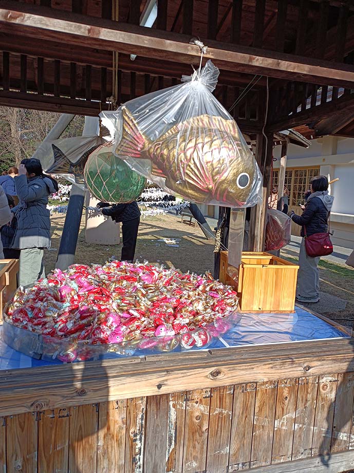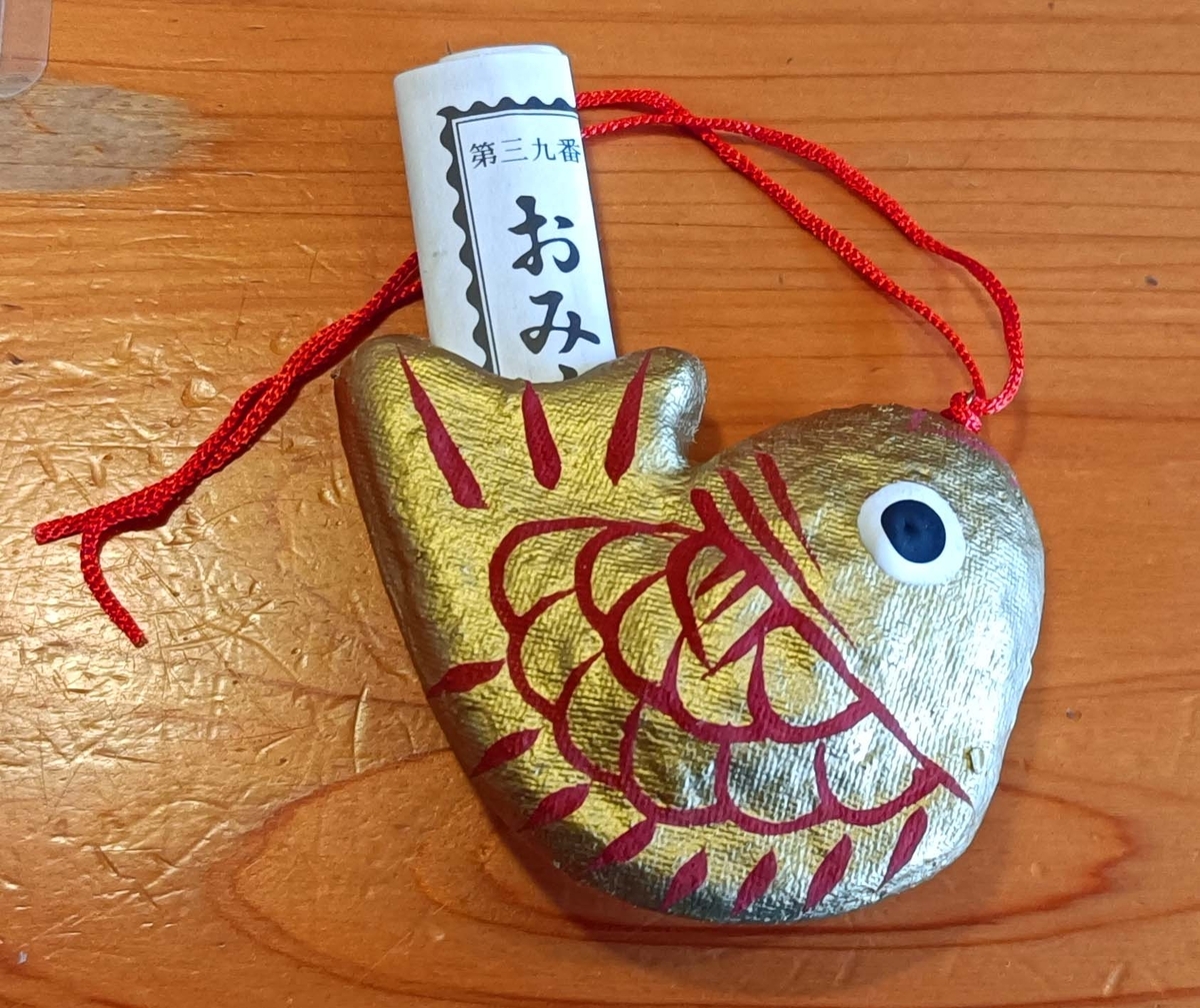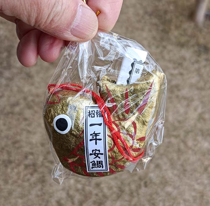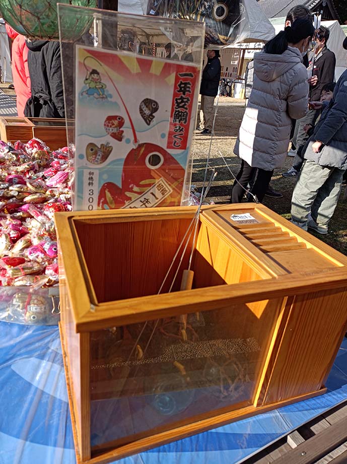 2026-01-02 鯛のおみくじ エトセトラ 大分県護国神社に初詣 なんか奇麗になってた 可愛い絵馬のついてたデッカイ破魔矢 本殿にお参りの後 鯛のおみくじを引く 右側の箱に300円を入れて 釣竿でおみくじを釣るのです 金色の鯛をゲット! コメダに寄って開いてみる 「吉」でした。