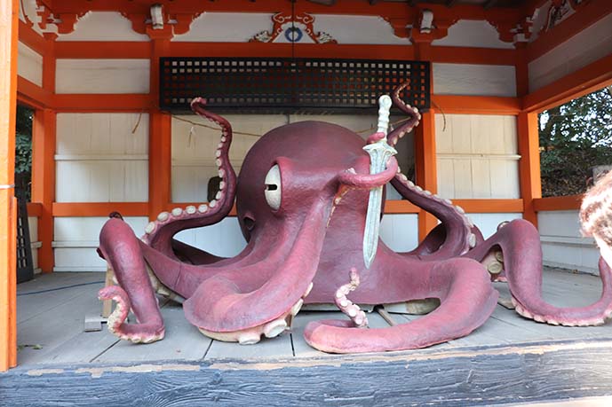 神楽殿にデーン!と大きな剣を持った蛸さん